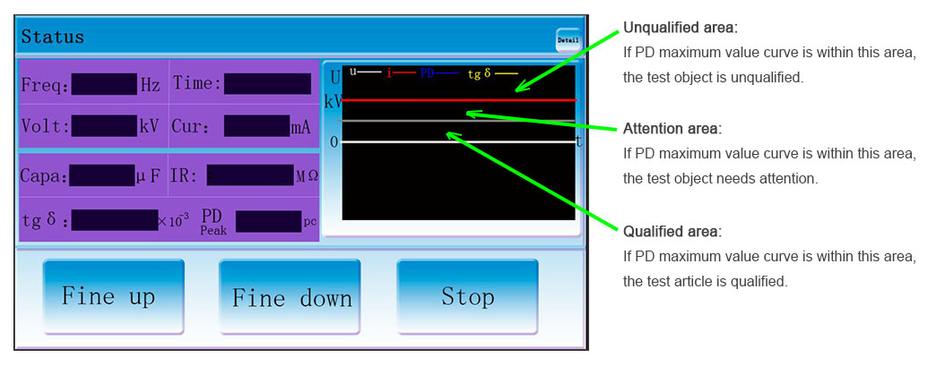 2. Tan delta (tgδ test), capacitance (μF) and IR (Ω) Test without external device (for buyer’s option).